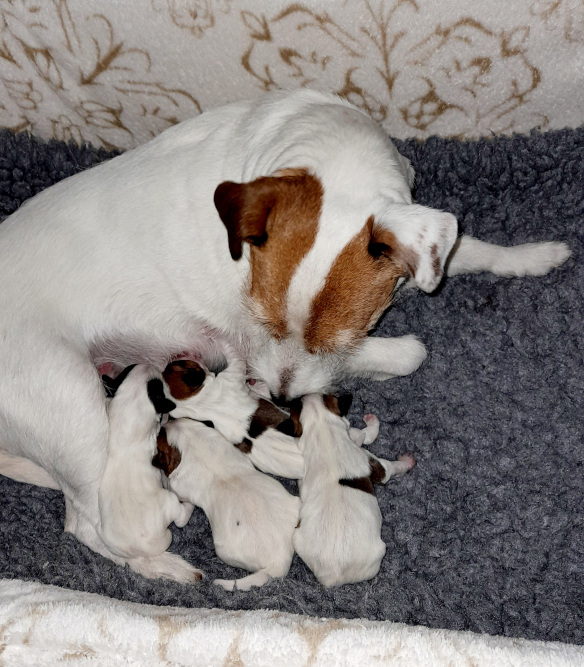 Am 17.02.2025 zwischen 09:40 Uhr und 11:45 Uhr brachte Hanna drei Rüden und ein Hündin zur Welt.